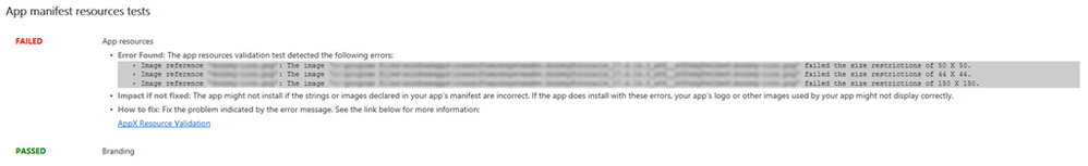 In this specific case, the failure reason is that the manifest of the app is declaring, as visual assets, a set of images that don’t respect the required resolutions.