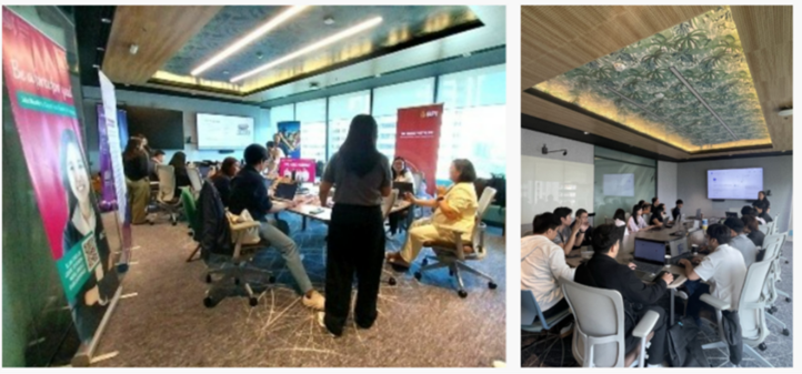 (Left) Career Bayanihan Founder, Drizzle Pablo, shared insights on TechBayanihan 2025 and expressed appreciation to partner companies for their participation. (Right) Participants from Emerson and Nestlé attended the Day 2 Copilot Studio workshop during HackBayanihan 2025.