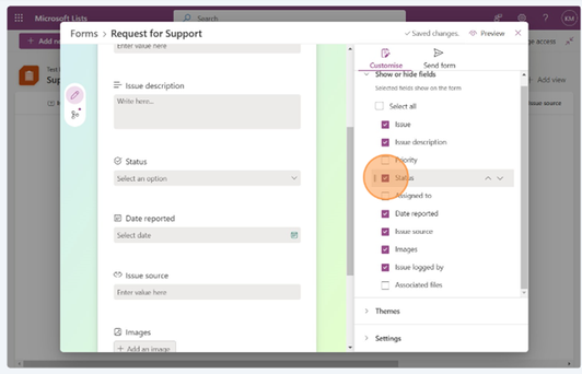 - Ensure the list is set up to store all necessary information for managing support tickets. There will be items you need captured from the person submitting the form as well as items to triage, assign, and track the status of the case.