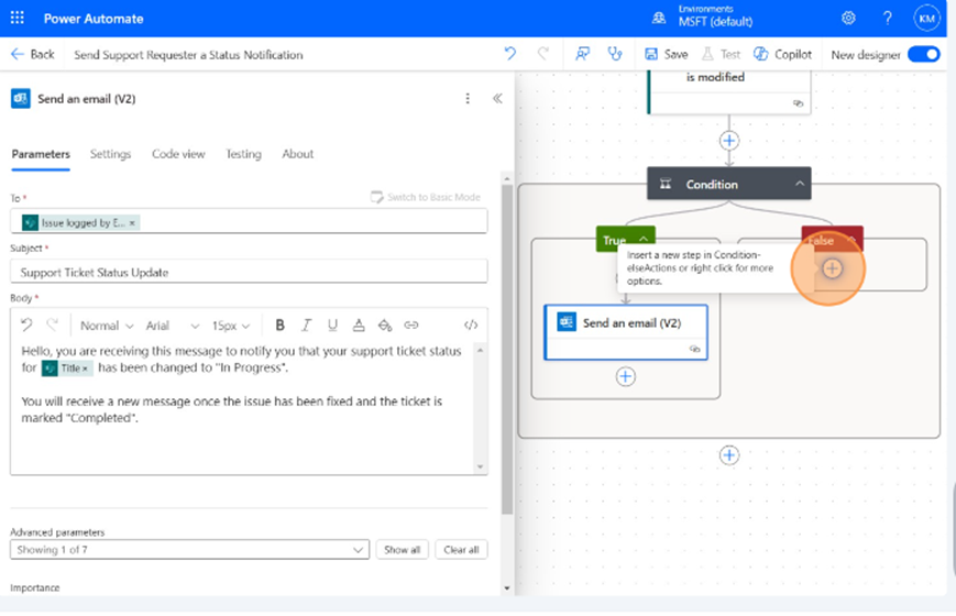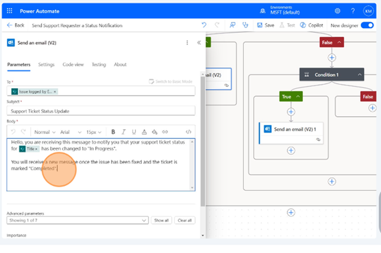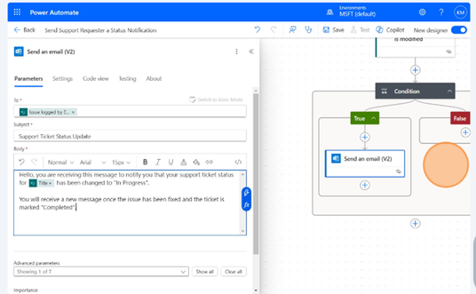 To further enhance the transparency and efficiency of your internal support ticket system, you can implement additional notifications to keep the requester informed about the status of their ticket. By setting up automated notifications in Power Automate for when a ticket is marked as "In Progress" and "Completed," you ensure that the requester is always aware of the current status of their issue. This not only improves communication but also boosts confidence in the support process, as employees feel assured that their concerns are being actively addressed and resolved.