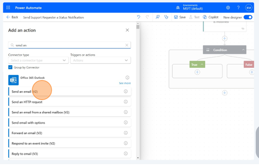 - In the true column add the same action for sending an email and fill out the details accordingly.