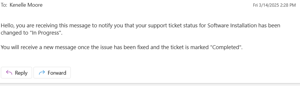 - Team members can update the status of the ticket to "In Progress" when they start working on it and then to "Completed" once the issue is resolved.