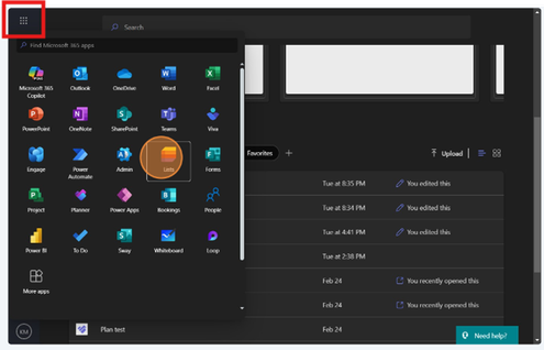 - Navigate to Microsoft Lists from the Microsoft365.com App launcher in the upper left.