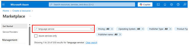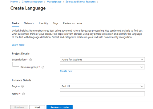To get started, you need to create a Language resource in the Azure portal: