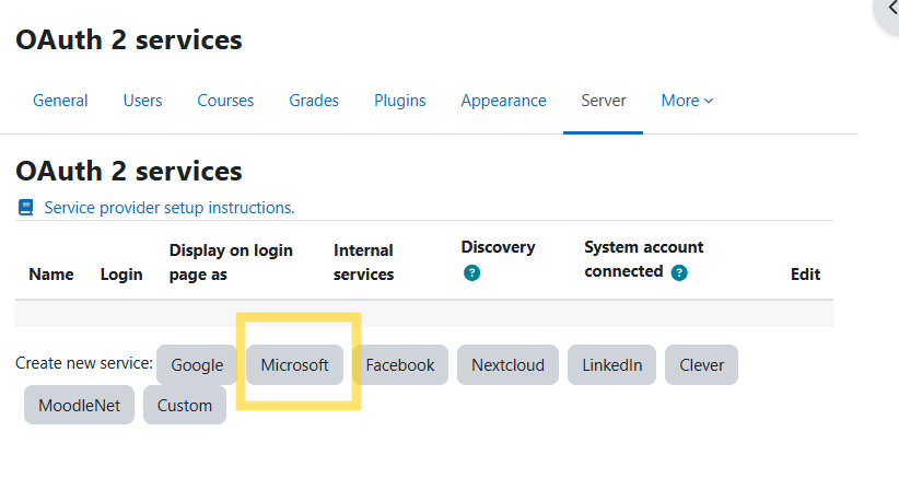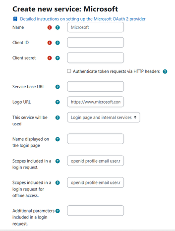 Input the details (client ID, Client secret, application ID, and service base URL) obtained within the setup within the Server-> OAuth 2 Services screen in Moodle.