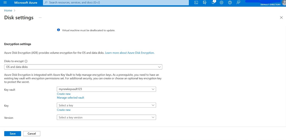 Step- 7: Under Encryption settings, select the Disks to encrypt option as OS and data disks.
