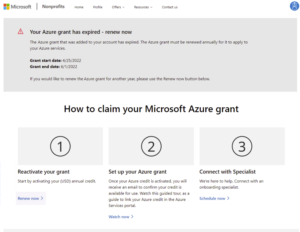 - If you have any issues with renewing your benefits create a support ticket with Nonprofit Support at https://nonprofit.microsoft.com/contactus.
