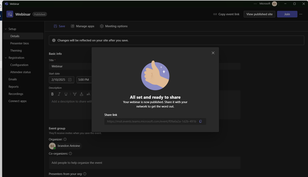 - Share the Registration Link: Copy the registration link from your Teams calendar and share it via email, social media, or your website to gather an audience.