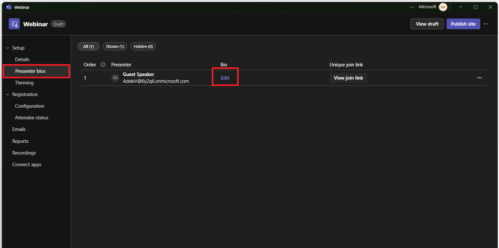 - Go to Presenter bios under the Setup section.