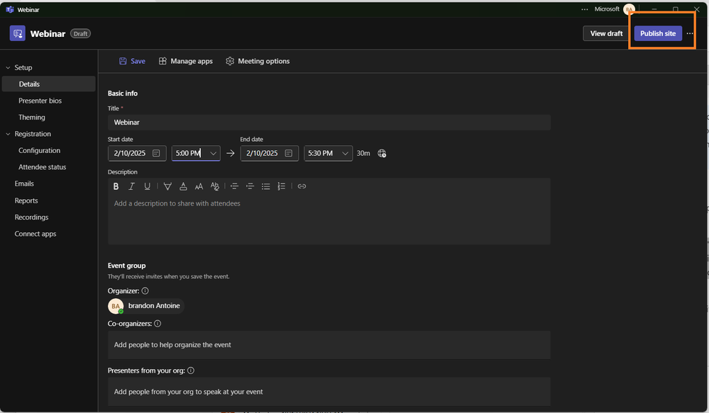 - Publish the Event: Once you've filled out the webinar details and registration form, publish it to make it discoverable by potential attendees.