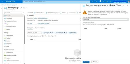 The most important point is when you are deleting any of the Resource Groups, all the resources belonging to that particular Resource Group along with the Resource Group will get deleted permanently....