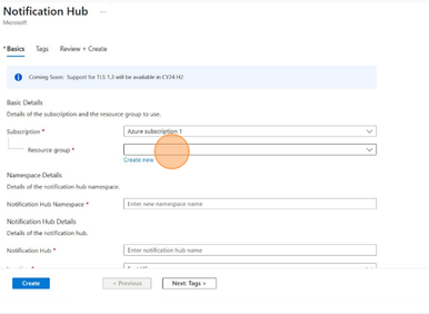 - Enter a unique name for your Notification Hub (e.g., “NonprofitHub”).