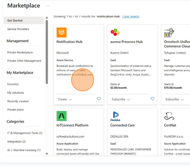 - In the "Search the Marketplace" box, type "Notification Hub" and press Enter.