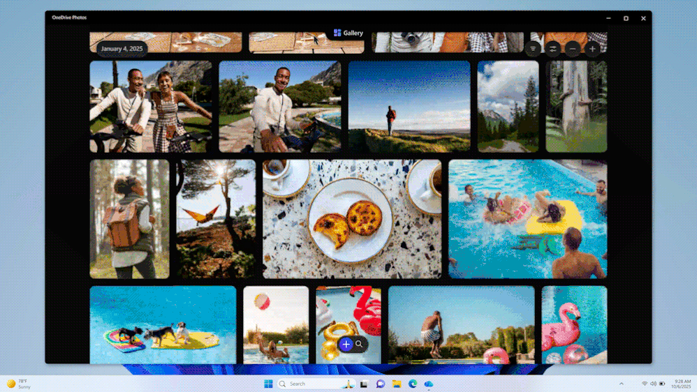 - A unified OneDrive Photos experience on Windows, bringing gallery, people view, AI slideshows, and editing together with your local photos.