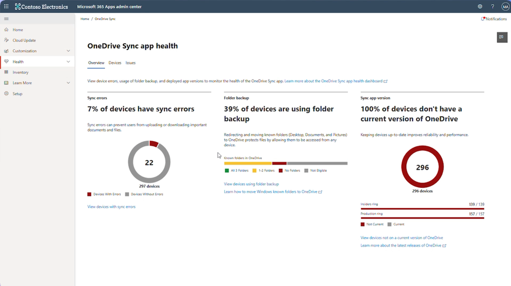 - The Sync Health Dashboard: Visibility and control are at the heart of effective collaboration. The Sync Health Dashboard in the Microsoft 365 Apps Admin Center provides an executive view across devices. With Microsoft Graph Data Connect, you can export telemetry to build custom reports and alerts in Power BI or Excel.