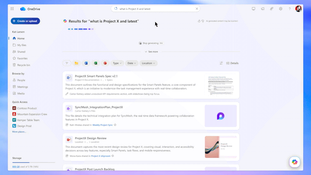 At today’s event, we showcased how AI is reshaping the way you work and relive your favorite moments. Whether you’re dealing with enterprise compliance or family photos, OneDrive now delivers personalized intelligence to every file. It's always on and ready with speed and reliability front and center, built for seamless team flow and collaboration, and there to rediscover your favorite memories, no matter your role or need.
