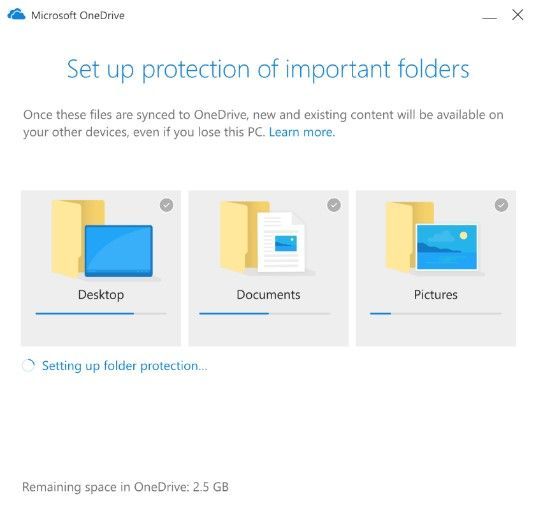User content is automatically synced with no disruption to productivity when moving content from the Desktop, Documents, and Pictures folders to OneDrive.