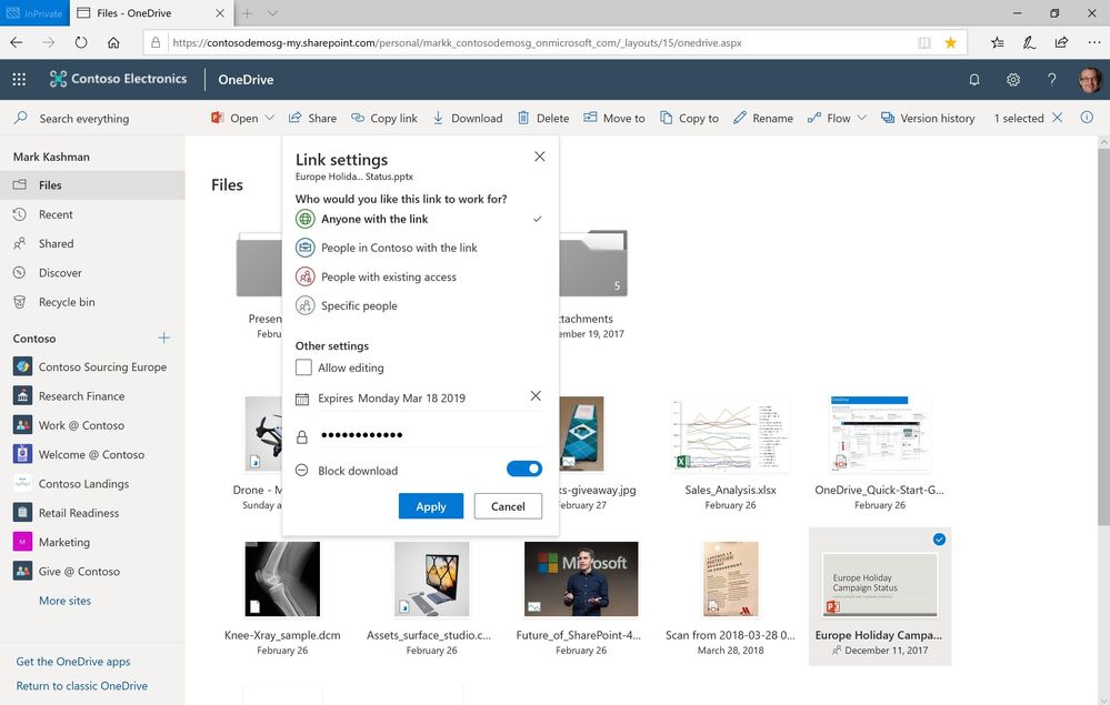 You can use OneDrive to share photos, Microsoft Office documents, other files, and entire folders with people. The files and folders you store in OneDrive are private until you decide to share them, and you can stop sharing at any time. Microsoft has invested to make the sharing experience consistent wherever you may be sharing from. Today, this includes OneDrive, Office desktop and mobile apps, SharePoint document libraries, desktop Files Explorer and Finder – with more to come. As much as we are rationalizing the files experience across Microsoft 365, we, too, are working to ensure the sharing experience and options are consistent across devices and platforms.