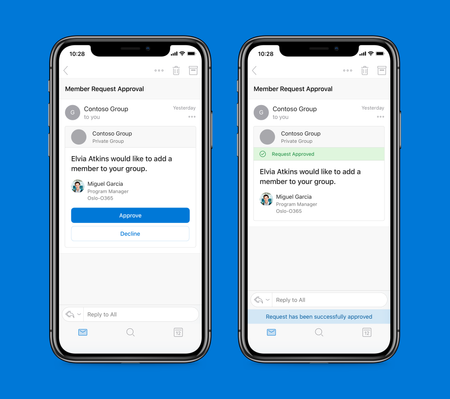 Today, we are announcing the support of Actionable Messages in Outlook for iOS and Android to further help customers get things done quickly on the go. When you receive an email that has an option to...