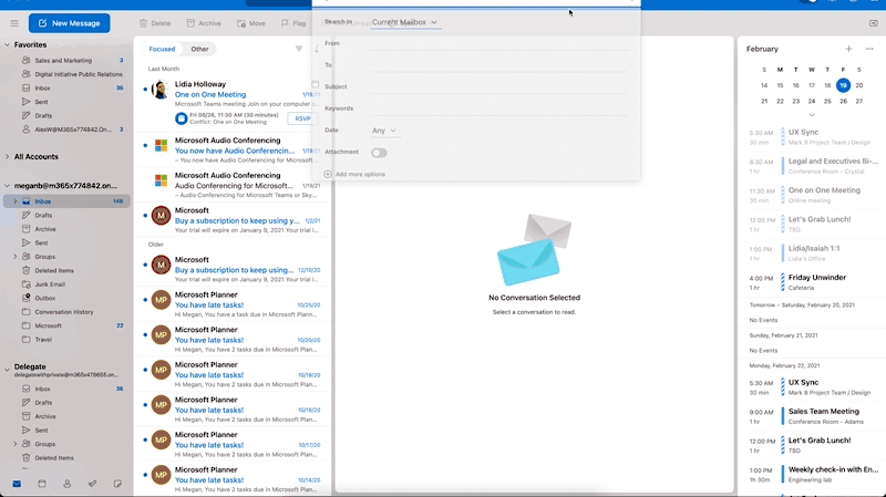 Since first releasing the new Outlook for Mac preview, support for shared calendars, mailboxes and mailbox delegation has been one of the top asked for features, critical to daily workflows of many users. We are very excited to announce that these are now available.