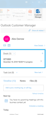 Outlook Customer Manager (OCM) enables you to manage deals. A deal is a business opportunity or potential transaction with your customers. You can use OCM to manage, track progress and view all information related to the deal.