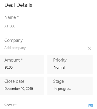 A new deal is created with no amount and due one week after the create date. You can manage the deal and update value by clicking View Details on the deal header.