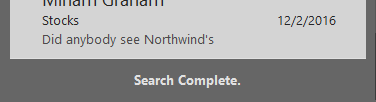 Just as earlier Outlook 2016 client versions did, clicking More sends a non-FAST query to Exchange. This is because the client has already determined that FAST search to the service is not available… no need to go back and try that again.