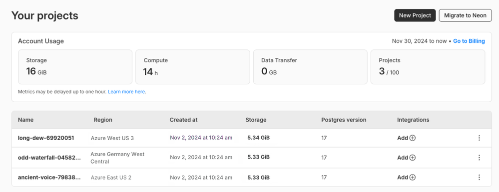 Go ahead and create more projects in the Azure regions of your choice and explore interesting features like branches and AI based query generation.