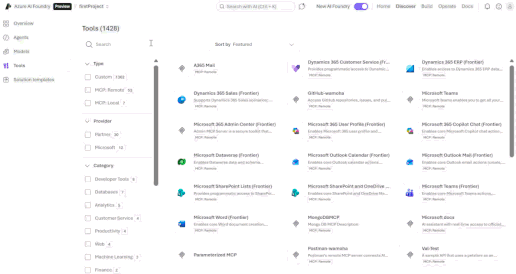 Start by browsing the Microsoft Foundry Tool Catalog (preview), which features a growing list of enterprise-ready tools.