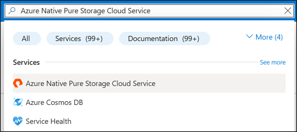 Fig 3: Searching for Azure Native Pure Storage via Azure portal