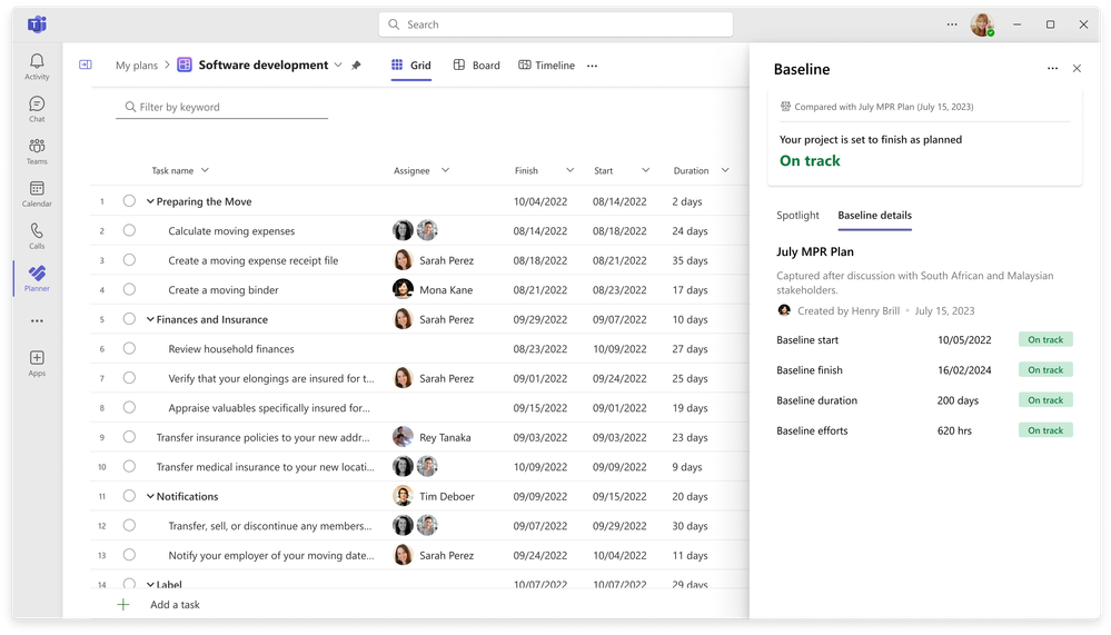 We’re excited to announce new enhancements to the Baseline feature in Microsoft Planner! Building on its foundational capabilities as introduced here, these updates bring powerful insights to help you track and improve your plan’s performance. Now, you can identify tasks on the critical path that need attention, stay on top of overdue tasks, and prepare for upcoming work with ease in comparison to your Baseline. These enhancements empower you to keep your plans on track and achieve your goals with confidence.