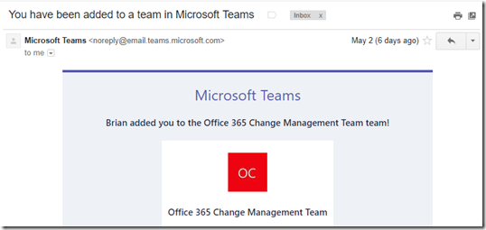 The important thing to remember here is that we are not federating a login with Google – and it actually creates an account in your Office 365 tenant which needs its own password – not your Google (or whatever) password – and please don’t re-use you Google password – very bad practice. The person you invite will see an e-mail (in this case in Gmail) – first verifying the e-mail address, and once you do, then you will receive an invite to Teams (in this case):