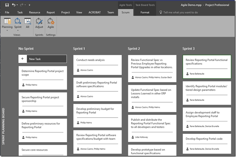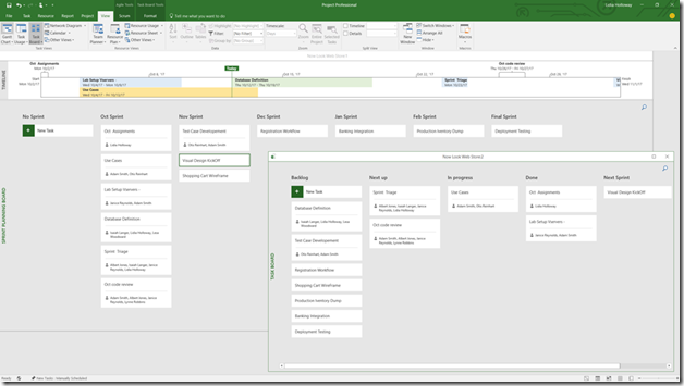 Today sees the announcement from the Project team of the new agile capabilities in the Project Online Desktop client, which, along with the recently released Planner integration gives project managers a broad choice of working style when managing their projects – using an agile approach with Scrum and Kanban, or a hybrid approach with these mixed in with the more traditional waterfall approach. For full details please see the blog post at https://blogs.office.com/en-us/2017/10/30/introducing-new-ways-to-work-in-microsoft-project/ and the “ https://support.office.com/en-us/article/Use-agile-in-Microsoft-Project-1b9b44d7-fd8e-4b3b-ab94-2b97deb9945b ” feature article.