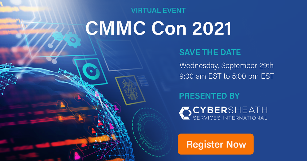 If you haven't already, don't miss your chance to register for CMMC Con 2021! CMMC Con 2021 picks up where last year’s conference left off, featuring expert speakers from across the government and Defense Industrial Base offering actionable strategies for CMMC compliance. This one-day, no-cost, virtual event kicks off at 9 a.m. EST on Wednesday, September 29, 2021. Register Now.