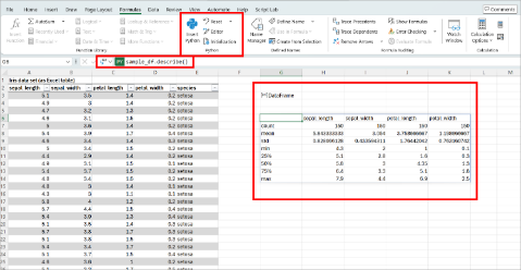 An example of a Python formula in an Excel workbook:
