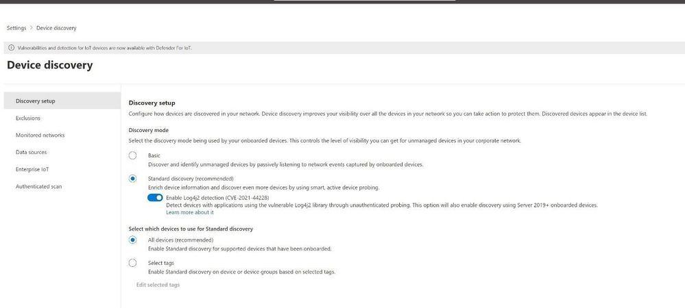 Figure 13 MDE discovery settings