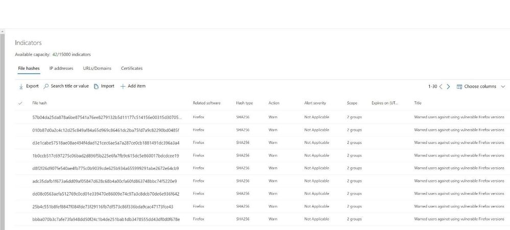 After a block is created, MDE creates a list of SHA256 hashes related to the blocked software that is used to verify which software should be blocked on the endpoints. Staff can see the hash information listed under the indicator’s settings.