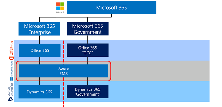 Office 365 pre-dates Microsoft Azure. We did have Windows Azure around about the same time as the first release of Office 365, but the Windows variant did not have many of the EM+S, PaaS and SaaS components that are included today. For the purposes of this conversation, we’ll focus on Azure AD and EM+S. Many of the native features evolved out of Office 365 and into Azure. MSO-DS became Azure AD and provides directory services, authentication and authorization beyond Office 365, including Azure Resource Manager and 3rd-party applications. Azure RMS spun out and is now bundled with Microsoft Information Protection (MIP). And the list goes on. Azure now provides a platform for many workloads, and we’ve continued to build on top of that. For example, Dynamics 365 and Visual Studio Online are now built on top of the Azure platform and integrate into services such as Azure AD in Commercial.