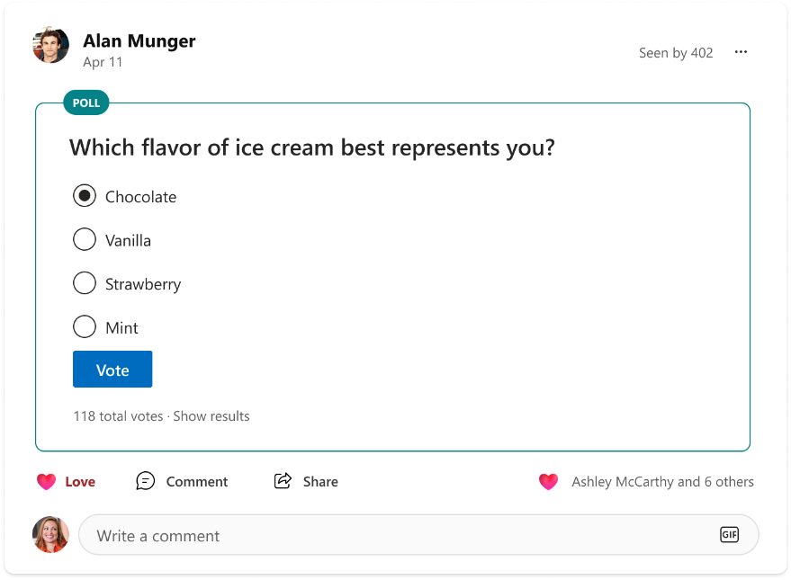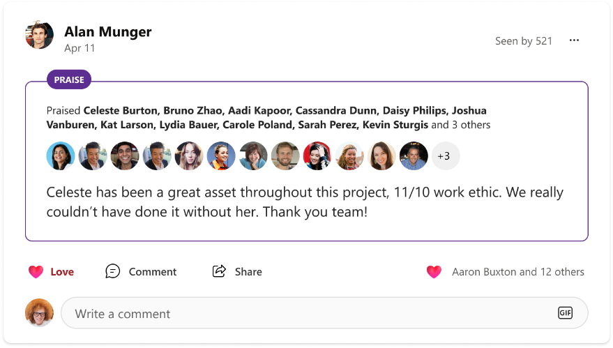 - Organizational view – exists in the Profile Card and as a dedicated experience in Org Explorer