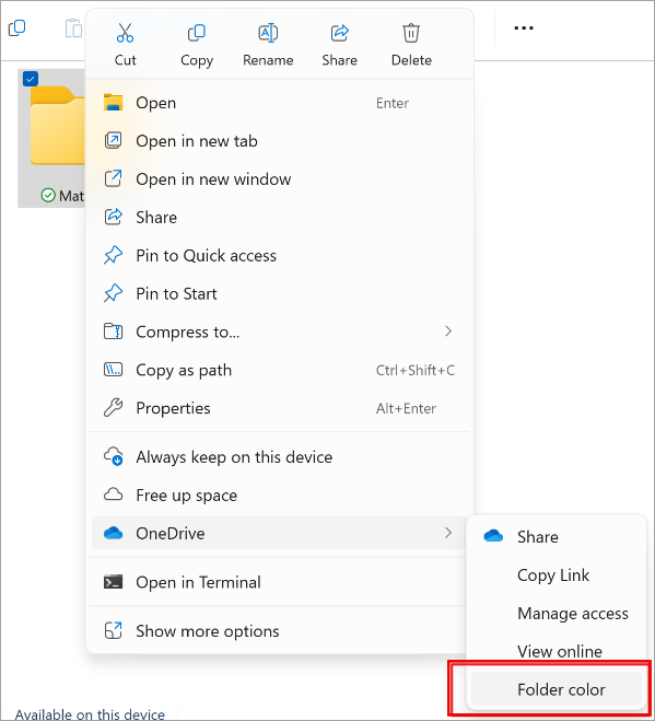 After this rollout, users will be able to see folder colors applied from OneDrive on the web in the OneDrive folder in File Explorer and manage folder colors in File Explorer by right clicking a folder name and then selecting OneDrive > Folder color.