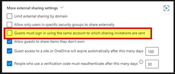 The setting Guests must sign in using the same account to which sharing invitations are sent will no longer appear in the SharePoint admin center. As the SharePoint Invitation Manager has already been retired, there is no behavior change in the product.