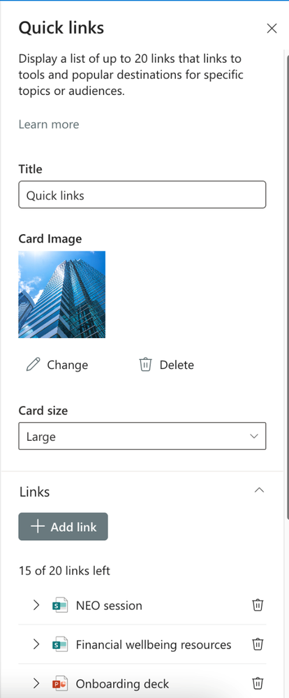 - The title area will be rebranded as a Banner web part with new layouts. Users can add one or more banner(s) to any column of a page, including a full-width section.