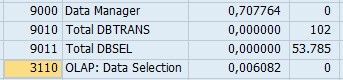 Be aware, that the SQL Statement statistics in SAP transaction DBACOCKPIT can be misleading, particularly for SAP BW queries. SAP BW always opens a database cursor for running a BW query. Processing in the BW OLAP engine is always performed in packages between database fetches. SQL Server is measuring the runtime of a SQL query as the time between the OPEN and the last FETCH. Therefore, the SQL query runtime in DBACOCKPIT contains the processing time on the application server! However, in SAP transaction ST03 (or RSRT), the processing time on the application server is correctly not included in the "DB Time" (or "Data Manager" time).