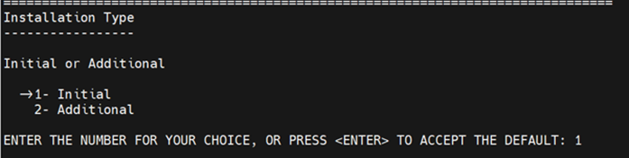 Step 4: Select the Installation Type, select 1 to indicate that Spectrum is getting installed for the first time on an initial application server (App1) and 2 for additional application server installation (App 2).