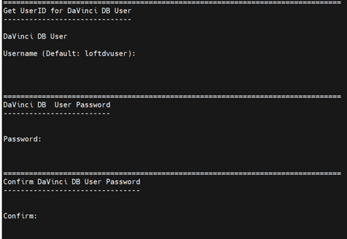 Step 10: Enter the username and password that you set for the DaVinci database user during the Spectrum database installation, and then confirm the password.