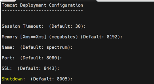 Step 13: Modify the number of minutes for a session timeout, the Tomcat Java memory settings for your configuration, the service name (name), HTTP port (port), HTTPS port (SSL), and the port number for the Tomcat shutdown command (shutdown), as needed.