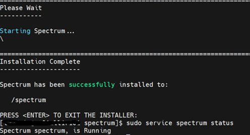Step 15: When complete, Installation Complete is displayed. Spectrum has been successfully installed.