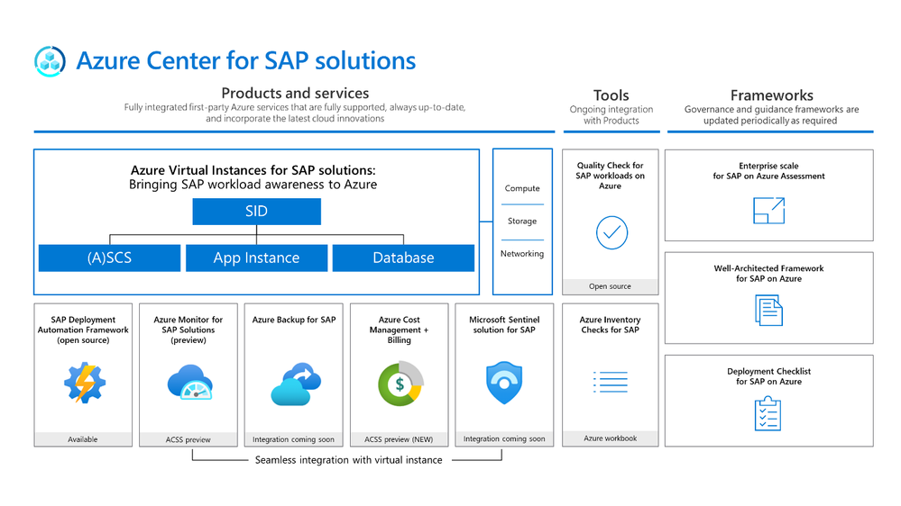 - Azure Center for SAP solutions (preview) bringing SAP workload awareness to Azure for deploying and managing SAP systems at scale and ensuring system quality and cost optimization