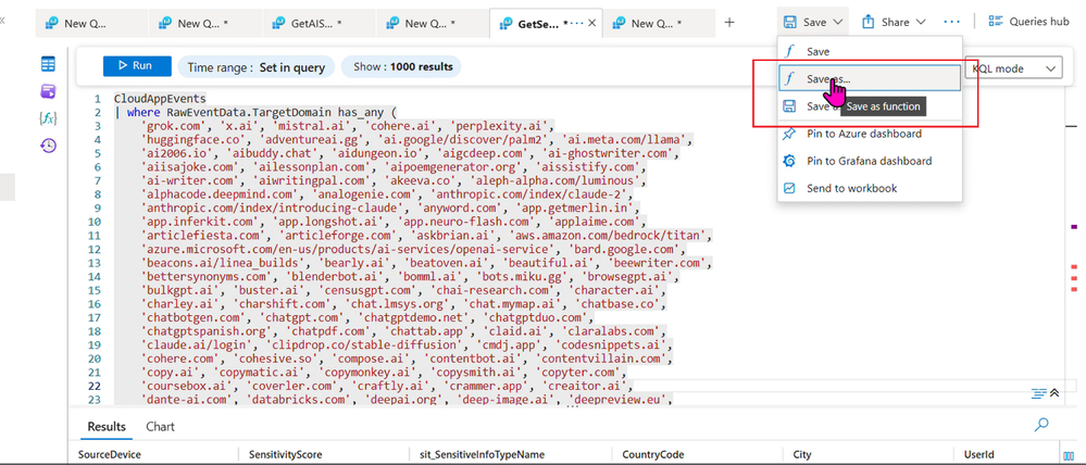 In this case, we have a 139-line KQL query that we will reduce to exactly one line that goes into the KQL plugin. In other cases, this number could be even higher. Without using functions, this entire query would have to form part of the plugin