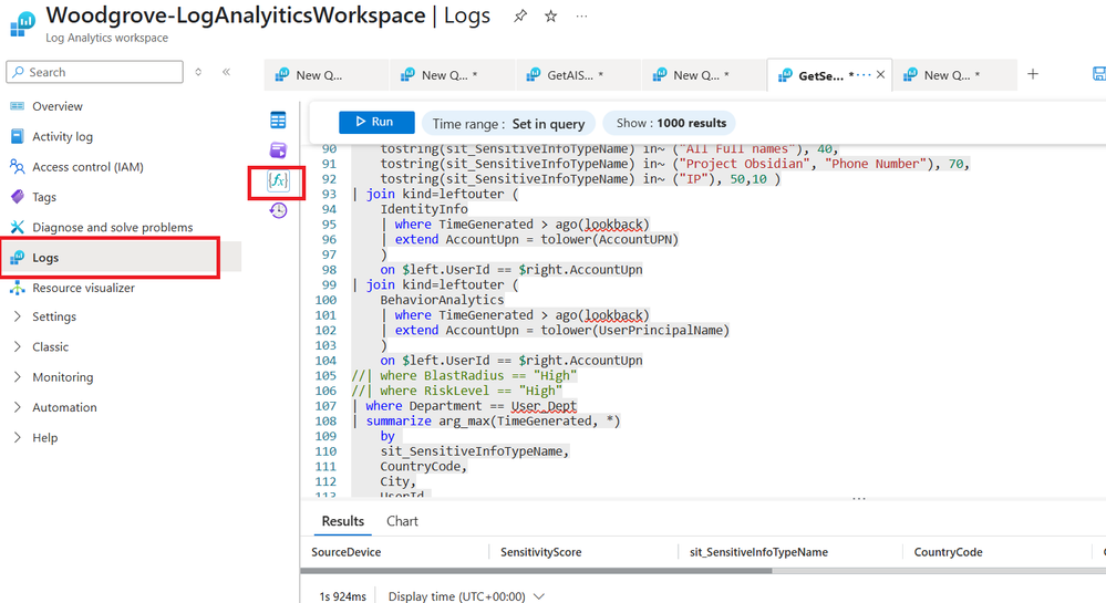 Parameterized functions centralize query logic, making it easier to update or enhance without modifying every instance across the plugin spec. To modify the logic, just edit the function in Log Analytics, test it then save it- without needing to change the plugin at all or re-upload it into Security Copilot. It also significantly reduces the need to ensure that the query part of the YAML is perfectly indented and tabbed as is required by the Open API specification, you only need to worry about formatting a single line vs several-potentially hundreds. - Validation: